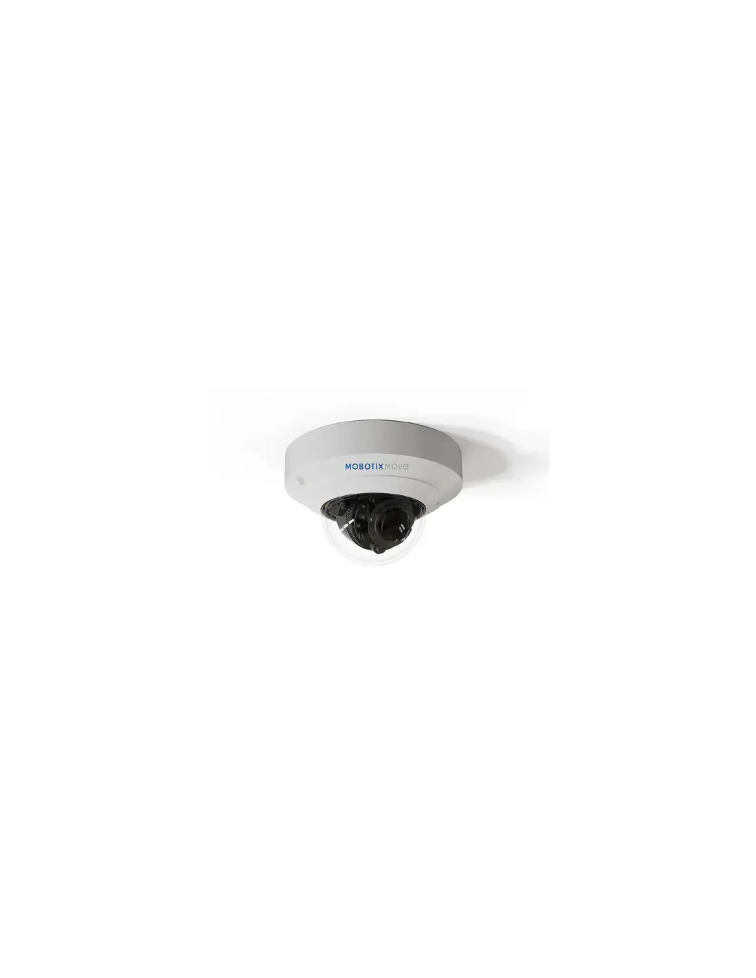 Cámara de red microdome para interiores MOBOTIX MOVE Mx-MD-5-IR - Máx. Resolución de imagen: 5M (2720x1976), CMOS progresivo de 1/2,7" - Cámara domo ONVIF S/G/T con LEDs IR integrados (hasta 15 m) para funcionamiento diurno y nocturno - Cambio automático de imagen en color a B/N (filtro de corte IR mecánico) - Objetivo fijo (F2.0: 2,8 mm), ángulo de visión H: 108,3°, V: - 76,5 °) - Ajuste de objetivo en 3 ejes - Interior, IK8 - Temperatura ambiente -30 a 55°C, humedad 10 a 90% sin condensación - Códecs de vídeo: H.264, H.265, MJPEG (hasta 4 flujos de vídeo simultáneos) WDR real (120 dB) - Max. Velocidad de fotogramas: 5MP H.264, H.265 @ 30 fps MJPEG: 1080p @ 30 fps - Alimentación: PoE IEEE802.3af, máx. 5,09 W - MTBF: 95.000h - Garantía: 2 años