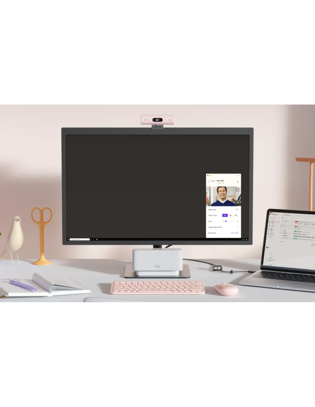 Webcam logitech brio 500 rosa full hd - usb tipo c