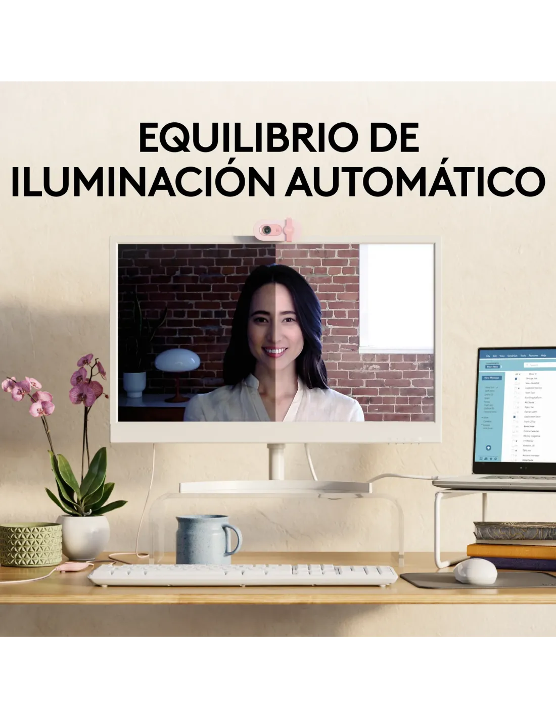 Webcam logitech brio 100 rosado full hd - usb